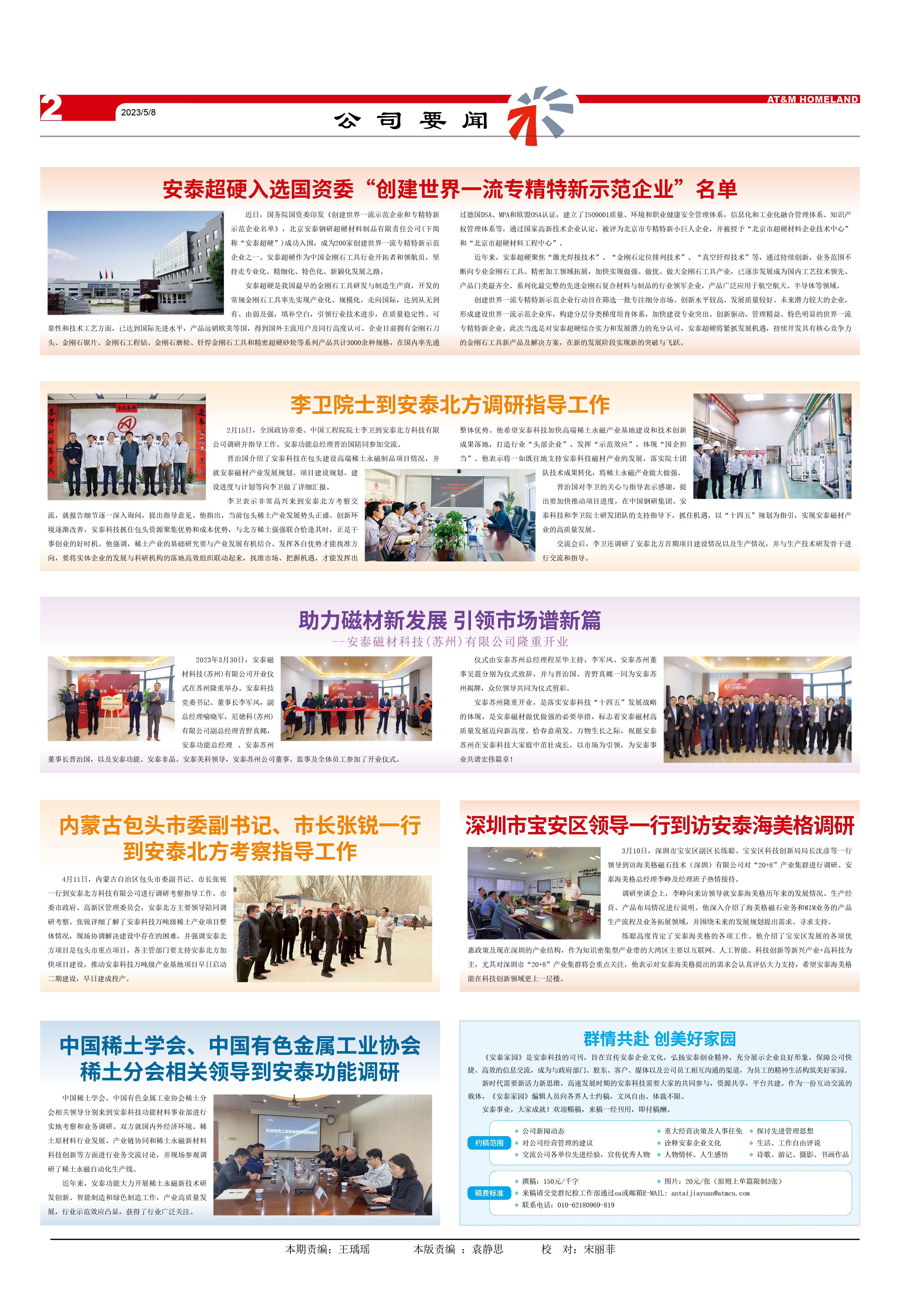 近年来,安泰超硬聚焦“激光焊接技术”、“金刚石定位排列技术”、“真空钎焊技术”等,通过持续创新,业务范围不断向专业金刚石工具、精密加工领域拓展,加快实现做强、做优、做大金刚石工具产业,已逐步发展成为国内工艺技术领先、产品⻔类最齐全、系列化最完整的先进金刚石复合材料与制品的行业领军企业,产品广泛应用于航空航天、半导体等领域。