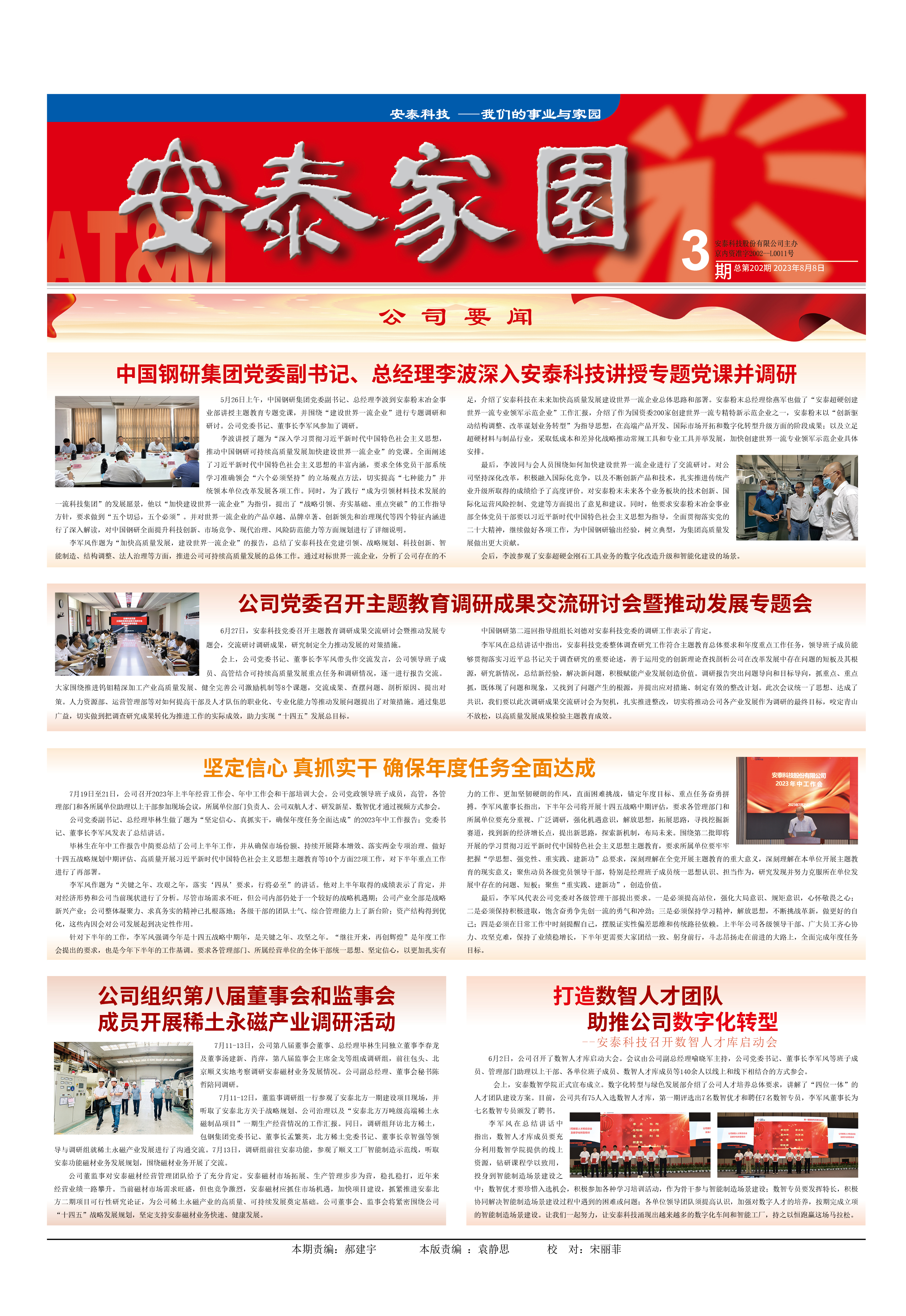 中国钢研集团党委副书记、总经理李波深入安泰科技讲授专题党课并调研